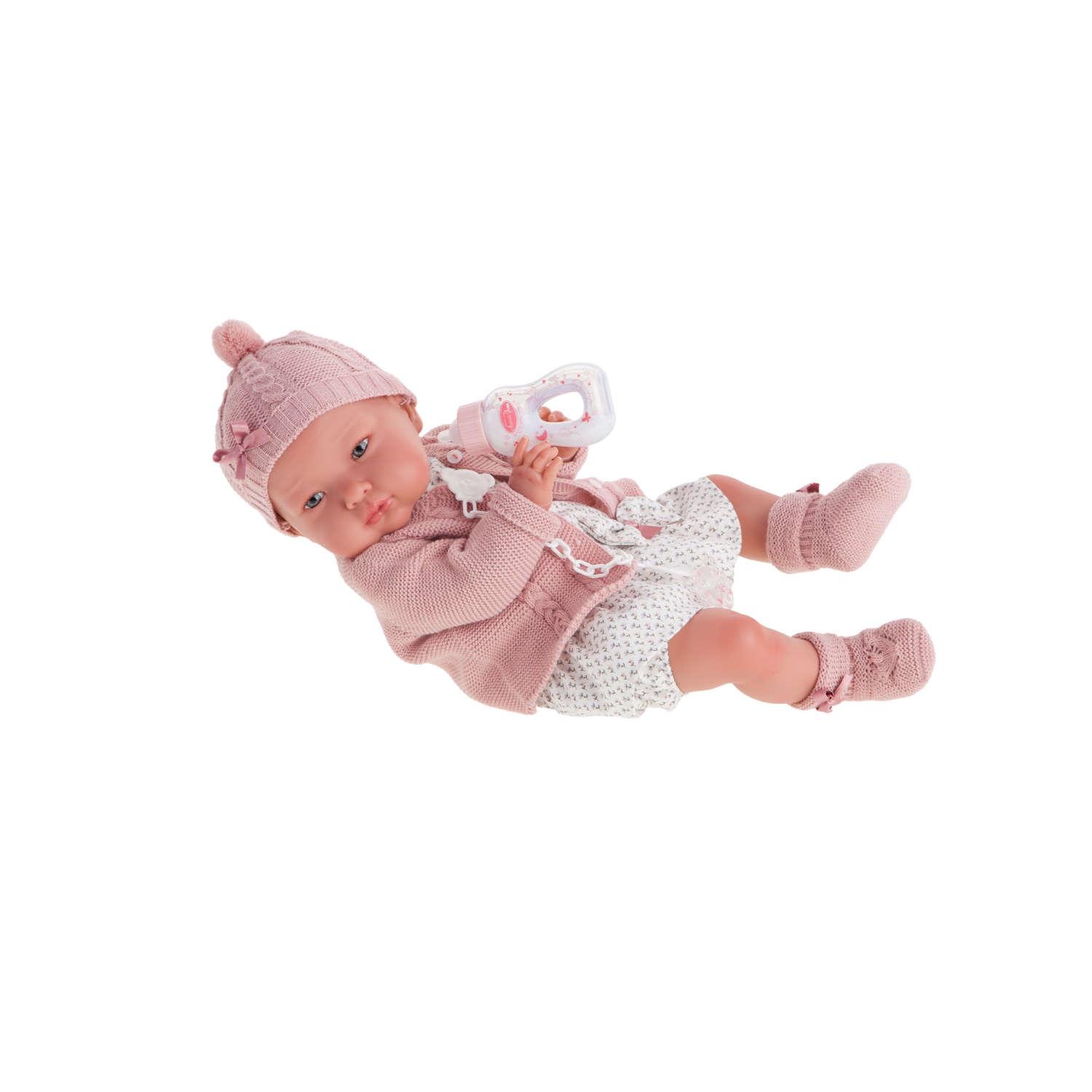 La mia prima bambola Alessandra con un corpo morbido e arti in vinile morbido. Si presenta con una tutina dai toni chiari e il set si completa con giacca, cappello e stivaletti in lana rosa abbinati.