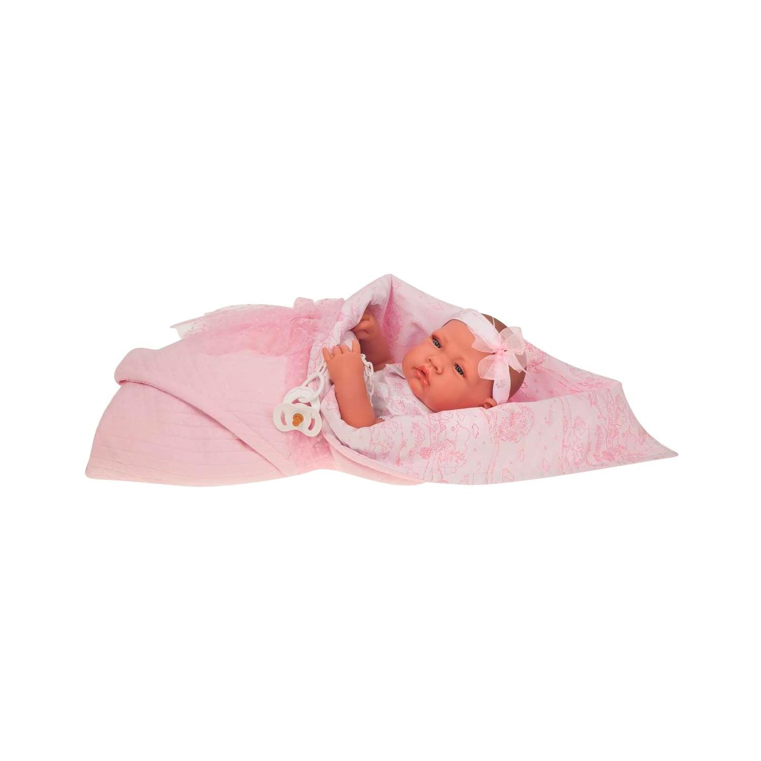 La bambola Pina Nina di Antonio Juan è realizzata artigianalmente e ha i connotati di una vera bebè. Indossa una bellissima tutina con decorazioni rosa e una fascia per la testa con il fiocco. All’interno della confezione sono presenti il ciuccio e una trapuntina a sacco double-face.