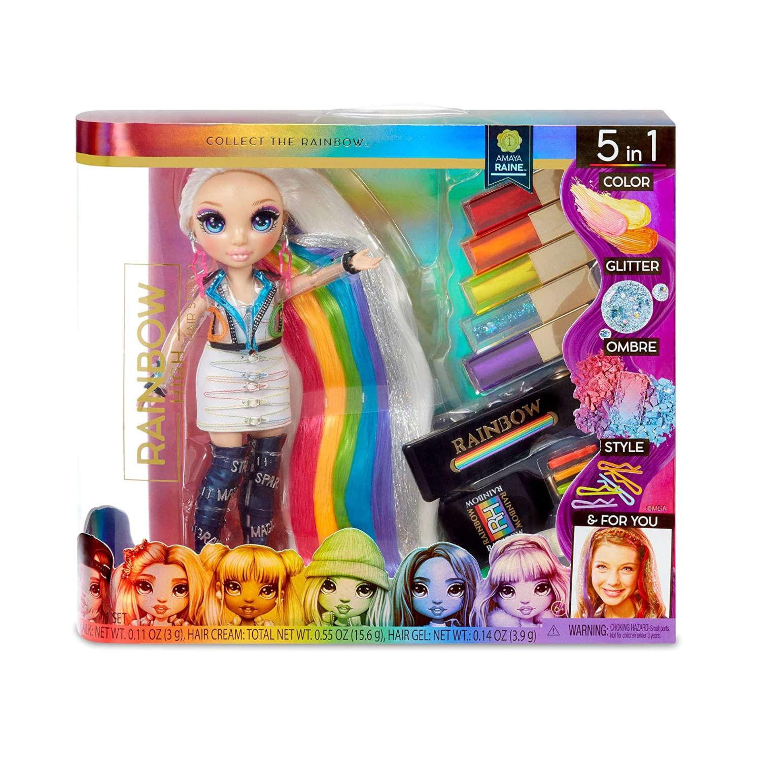 PER TE E LA TUA BAMBOLA – Crea bellissimi capelli arcobaleno per te e la tua bambola. Suggerimento degli esperti – Quando disimballi la bambola lavale i capelli per rimuovere il gel e lascia asciugare. Sarà pronta per un restyling arcobaleno.