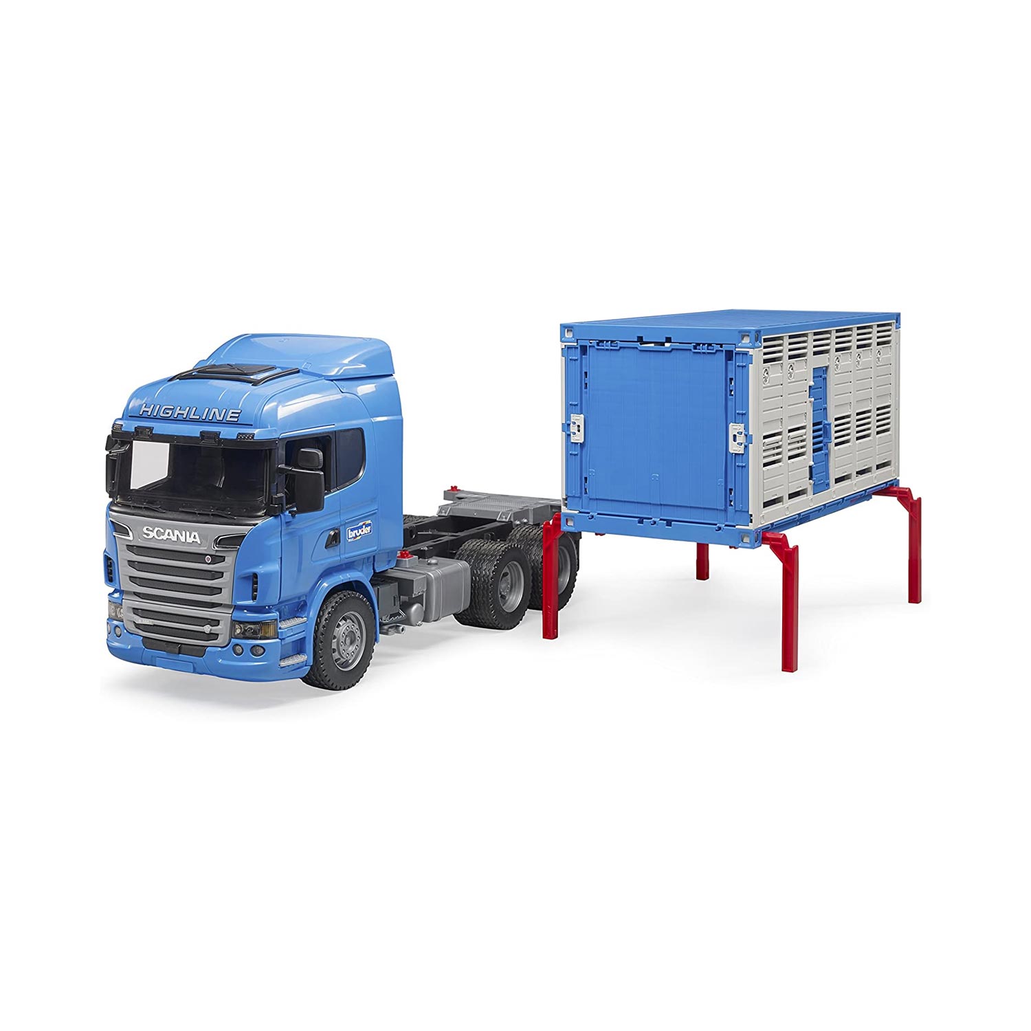 Scania Serie R di Bruder è il camion ideato per le operazioni di carico e scarico degli animali senza rischi. É dotato di una rampa pieghevole allungabile con una griglia divisoria interna mobile che consente di definire lo spazio per tutte le razze, abbeveratoi integrabili e tanto altro. Il bue è incluso nella confezione.