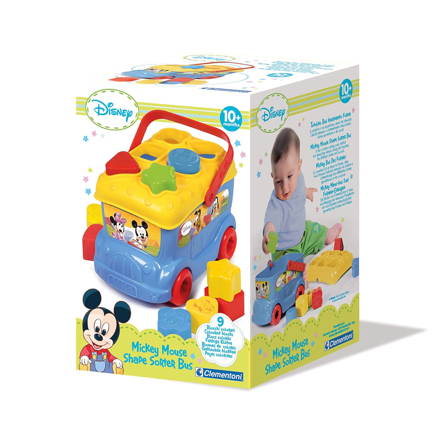 Topolino bus inserimento forme di Clementoni è un simpatico mezzo contenitore per stimolare il bambino a riconoscere le forme e i personaggi Disney. Contiene 9 formine colorate da inserire con le immagini dei simpatici personaggi.