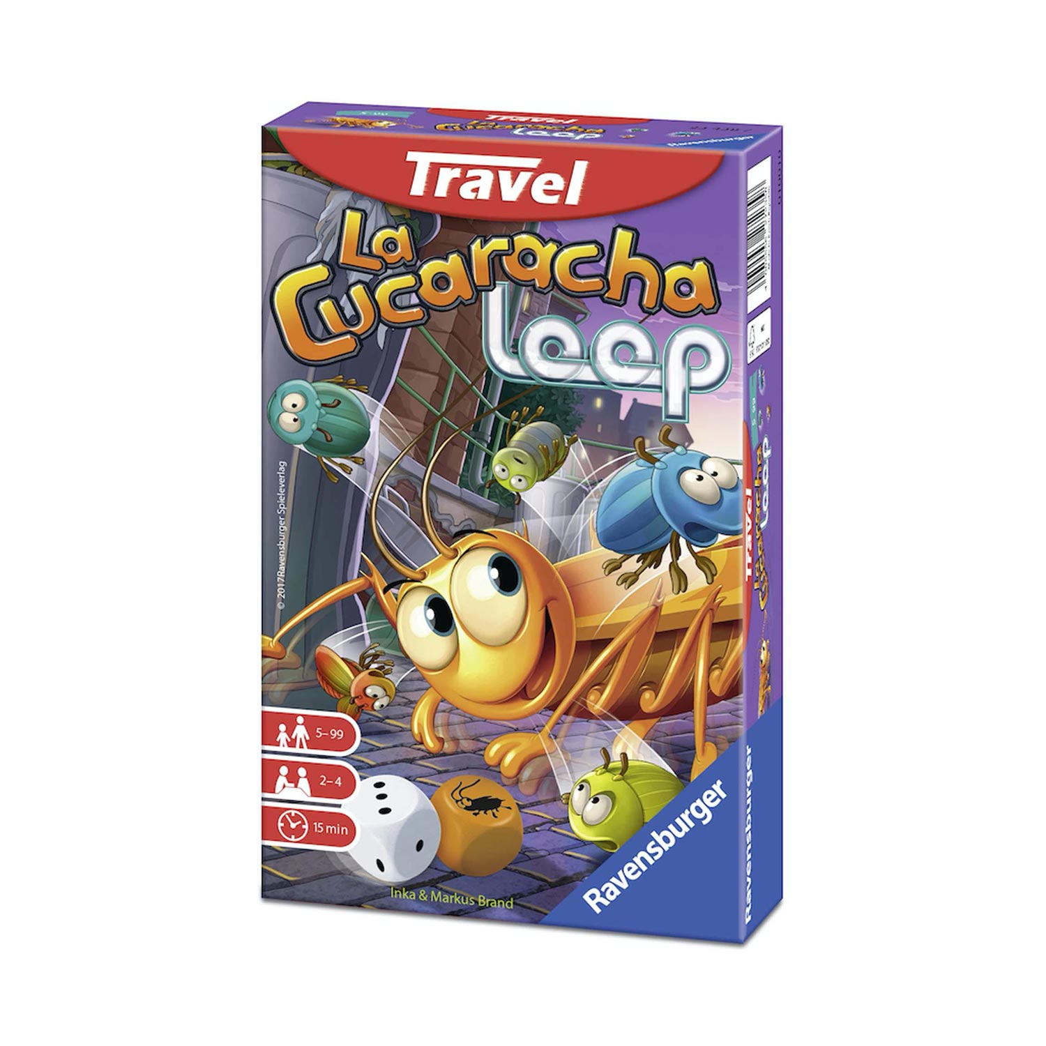 La Cucaracha Loop di Ravensburger nella versione viaggio è un gioco coinvolgente e divertente. Ha come obiettivo riportare per primo tutti e tre i maggiolini alla casella di traguardo sfuggendo allo scarafaggio che piomba in cortile.