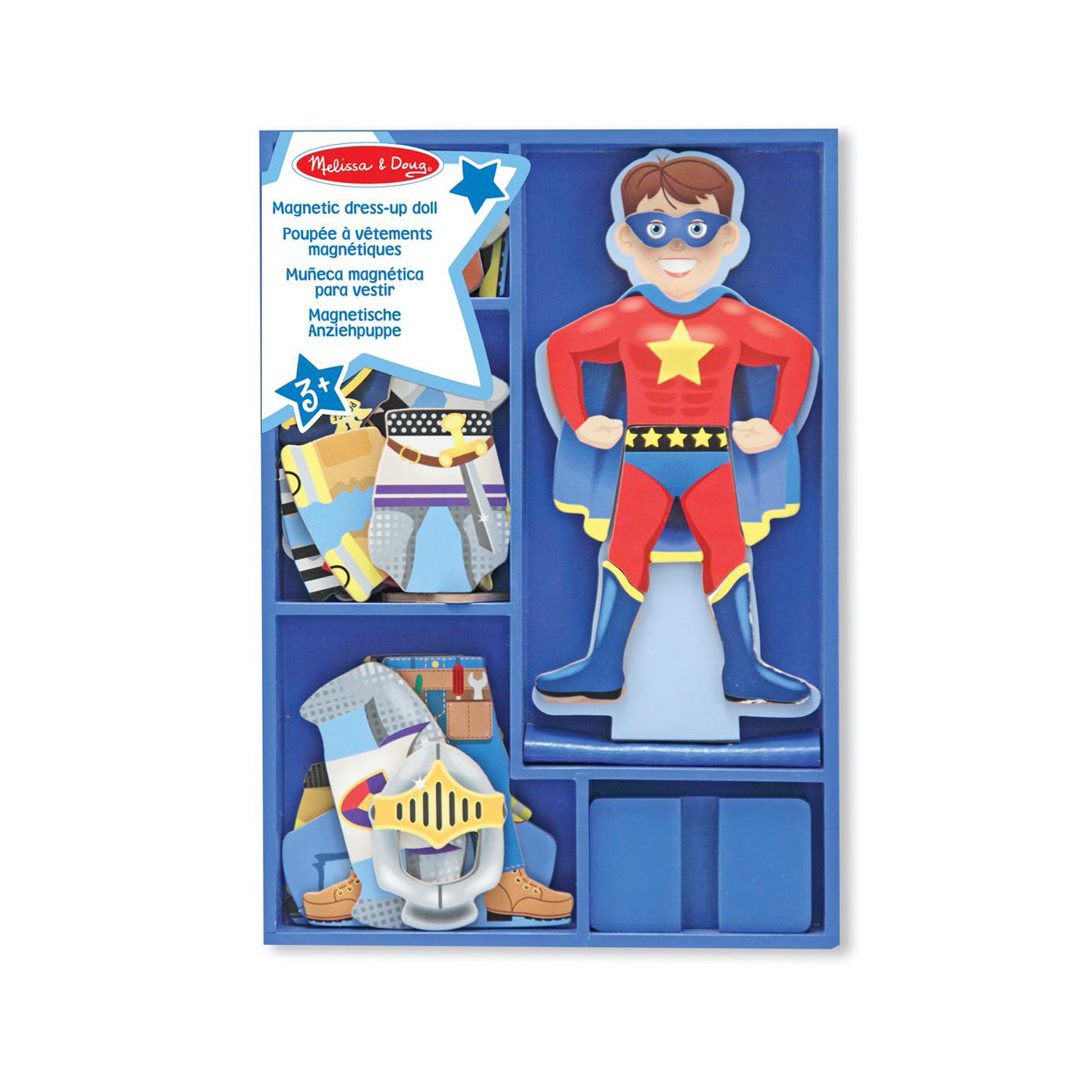 Il personaggio di Billy di Melissa & Doug ha un set magnetico di abiti per poter personalizzare il look e cambiare ruolo. Potrà diventare poliziotto, super eroe, pompiere, pirata o cavaliere. Un gioco di finzione per vivere in un unico gioco tantissime avventure.