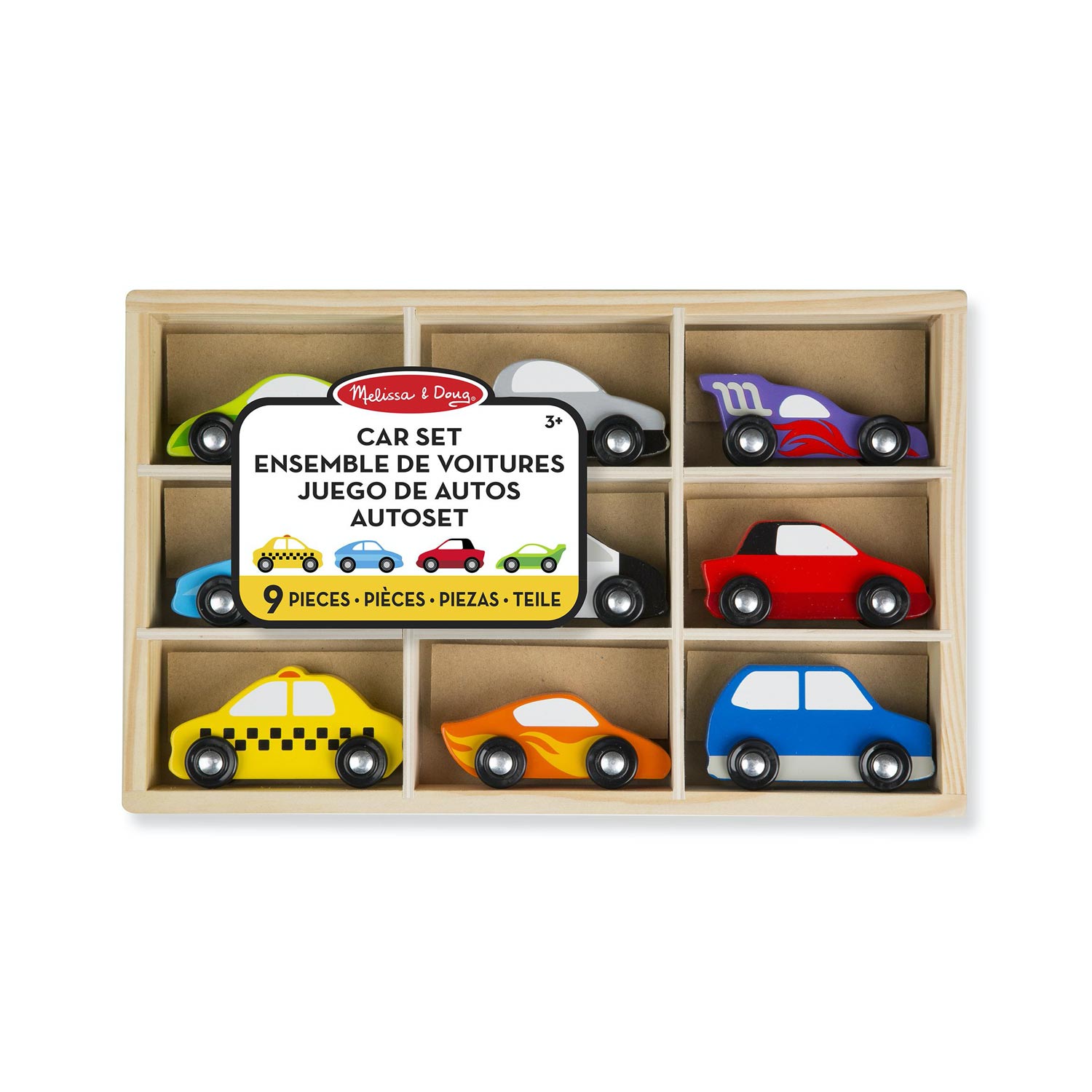Il set di Melissa & Doug include 9 macchine tutte diverse pronte allavventura. Sono racchiuse in una scatola riutilizzabile per tenere in ordine o per esporre i veicoli. Un gioco colorato e divertente per sviluppare le capacità motorie e la coordinazione occhi-mano.