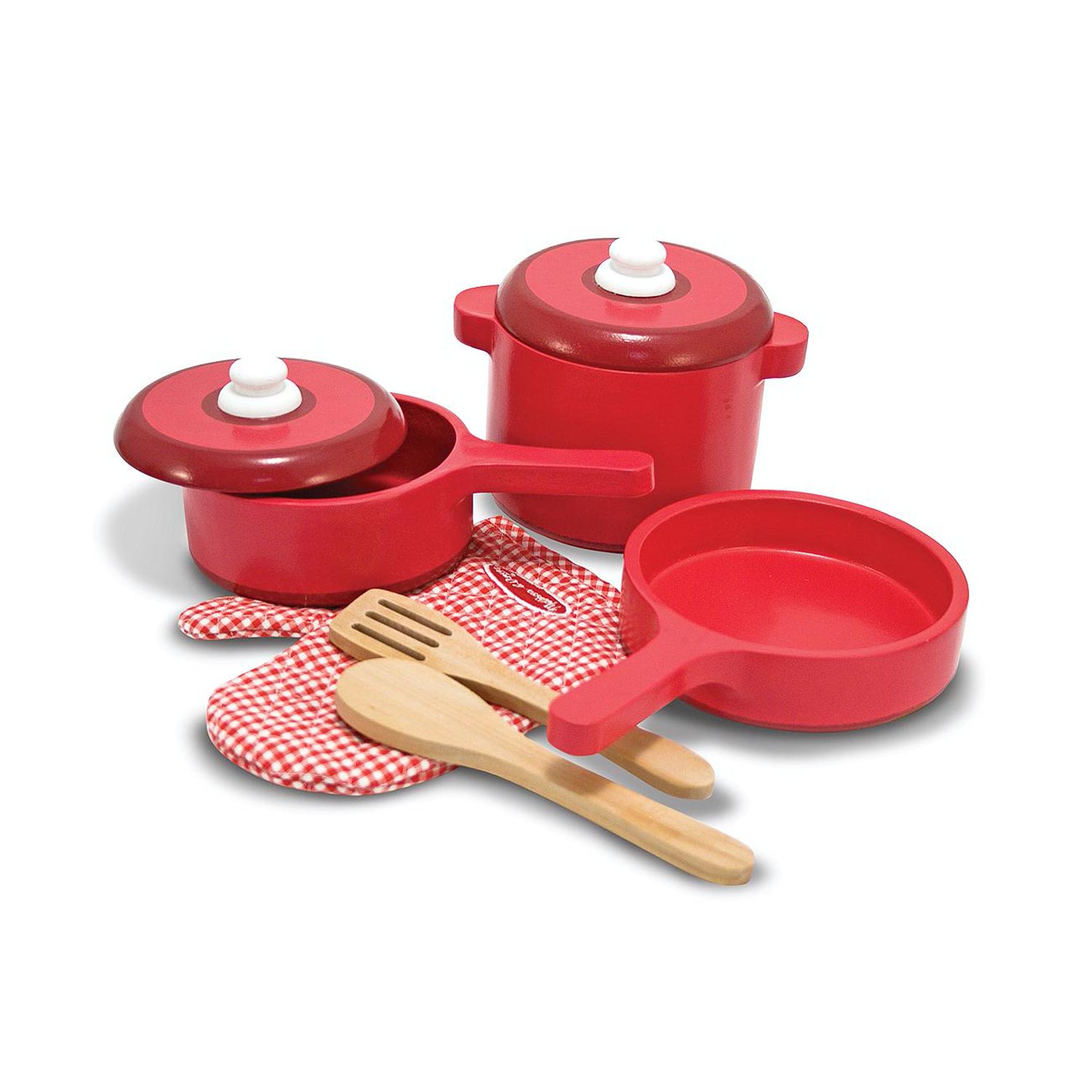 Il set di Melissa & Doug è completa di tutti gli accessori per equipaggiare una cucina giocattolo. Include tegame, padella, 2 coperchi, guanto da forno, cucchiaio di legno e spatola in legno per stimolare l’immaginazione e la creatività.