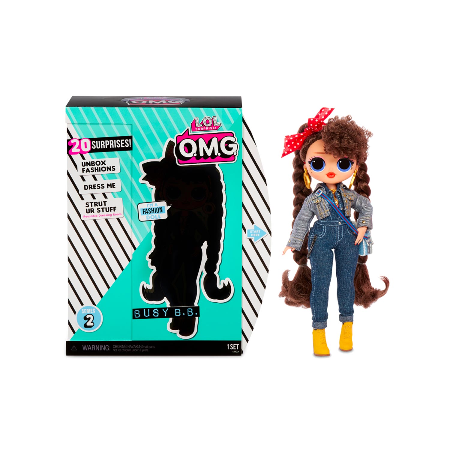 LOL O.M.G include allinterno la sorella maggiore con 20 sorprese allinterno. Il personaggio indossa degli abiti scintillanti e i suoi accessori favolosi. Le mani possono essere rimosse per vestirsi facilmente. Inclusi nella confezione bambola alla moda, abiti, scarpe, scatola da scarpe, accessori, cappelliera, borsetta, spazzola per capelli, borse per vestiti, supporto per bambola e set di gioco riutilizzabile.