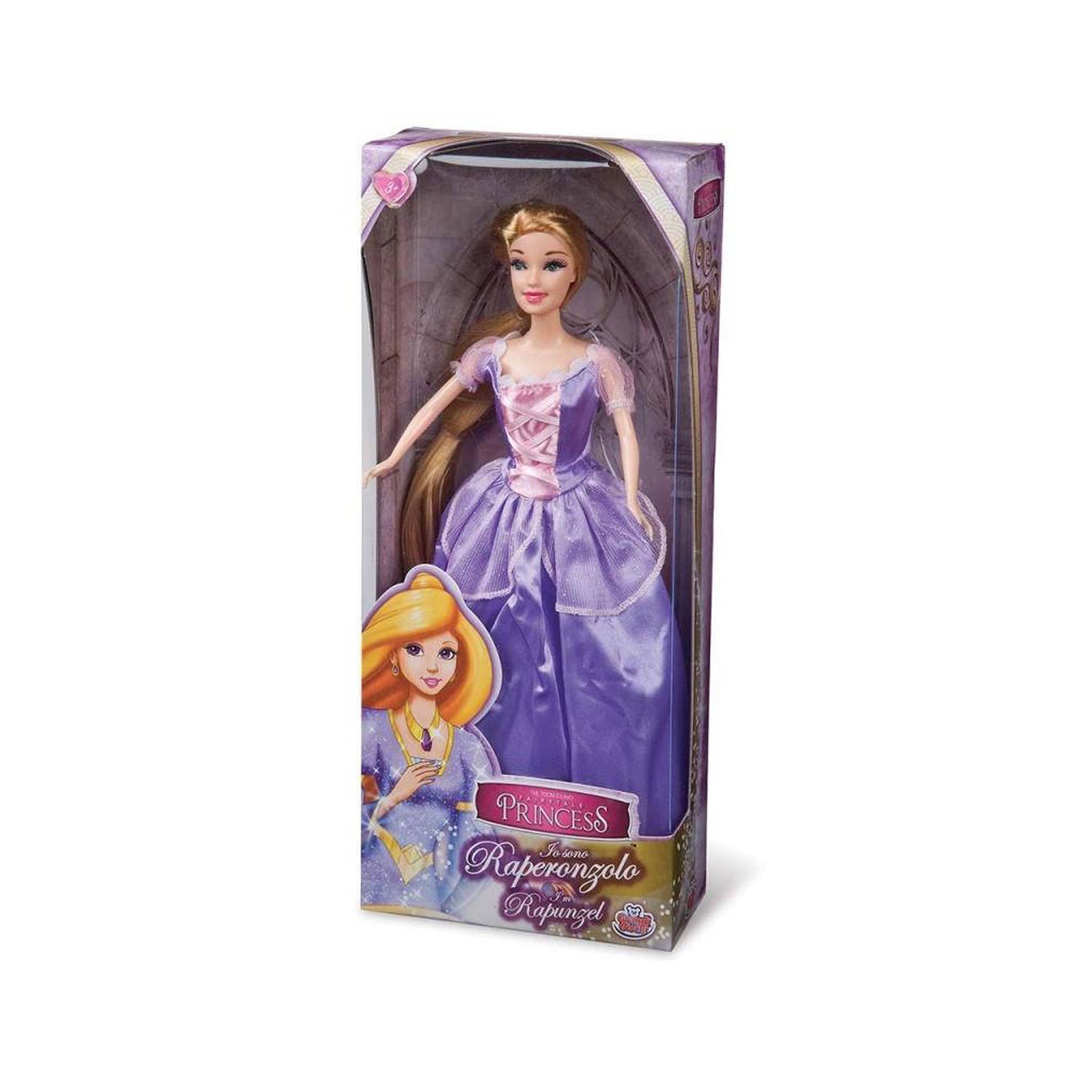 Le bambine potranno rivivere la splendida favola di Raperonzolo con la bambola della principessa, alta ben 29cm e completa di scettro, abito, tiara, spazzola, anello e scarpette.