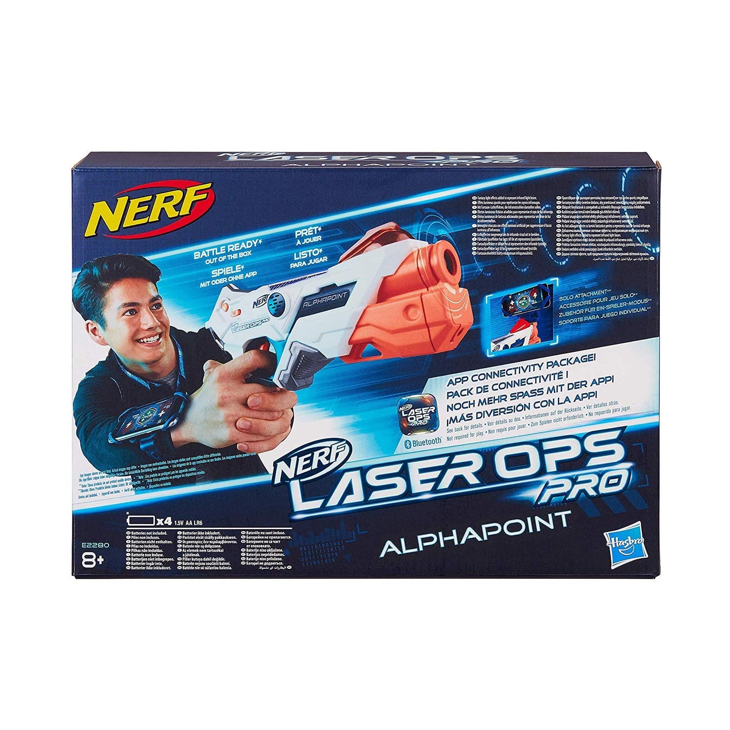La pistola laser ops single shot di Nerf offre ai giocatori tutto ciò di cui hanno bisogno per affrontare le battaglie. Dispone di un check caricatore, luci e suoni per uno sparo singolo o a raffica. Ha gli indicatori di livelli di energia, munizioni, un braccialetto e un accessorio smartphone.