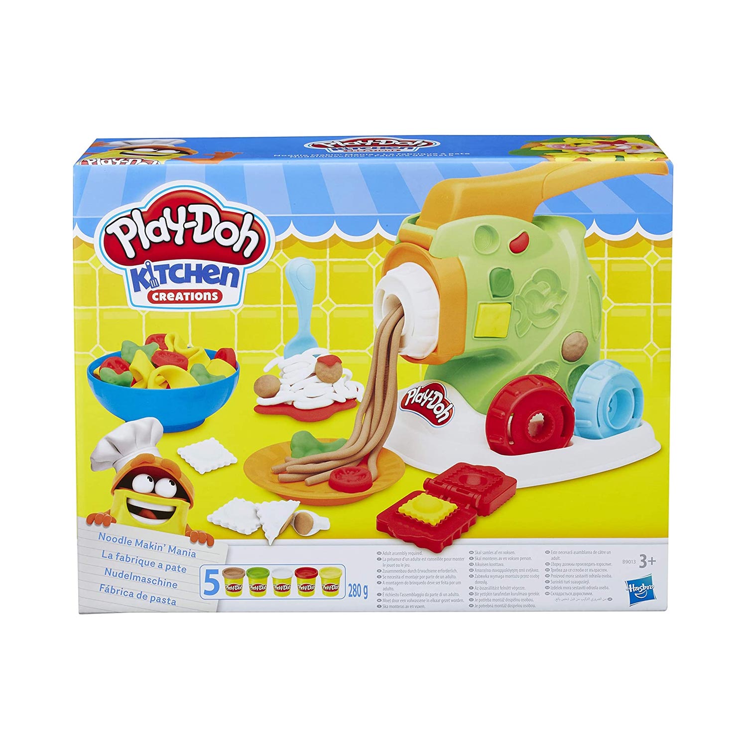 Il set Play-Doh è composto da 5 vasetti di pasta modellabile con cui sbizzarrirsi per creare spaghetti, ravioli, maccheroni e lasagne. Basta sostituire i dischi della speciale pressa per avere la pasta di tutte le forme da poter modellare con il taglierino e lo stampo a libro.