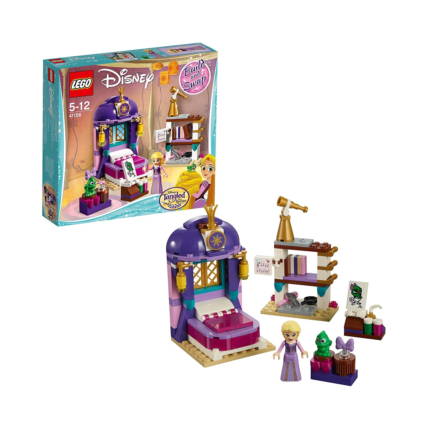 La cameretta nel castello di Rapunzel Disney di Lego include una via di fuga, un letto con compartimento segreto, una finestra apribile, una libreria, un cavalletto, un telescopio e tantissimi altri accessori. Include la mini-doll di Rapunzel e il personaggio di Pascal.