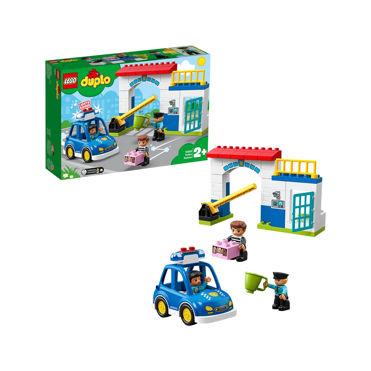 La stazione di Polizia di Lego Duplo è un mondo realistico in cui aiutare gli agenti a pattugliare le strade e a catturare il ladro in fuga con le loro ciambelle. Contiene una stazione della polizia facile da costruire con porta della cella apribile e unauto della polizia giocattolo con luci e sirena. Allinterno della confezione sono inclusi gli accessori e 3 personaggi.