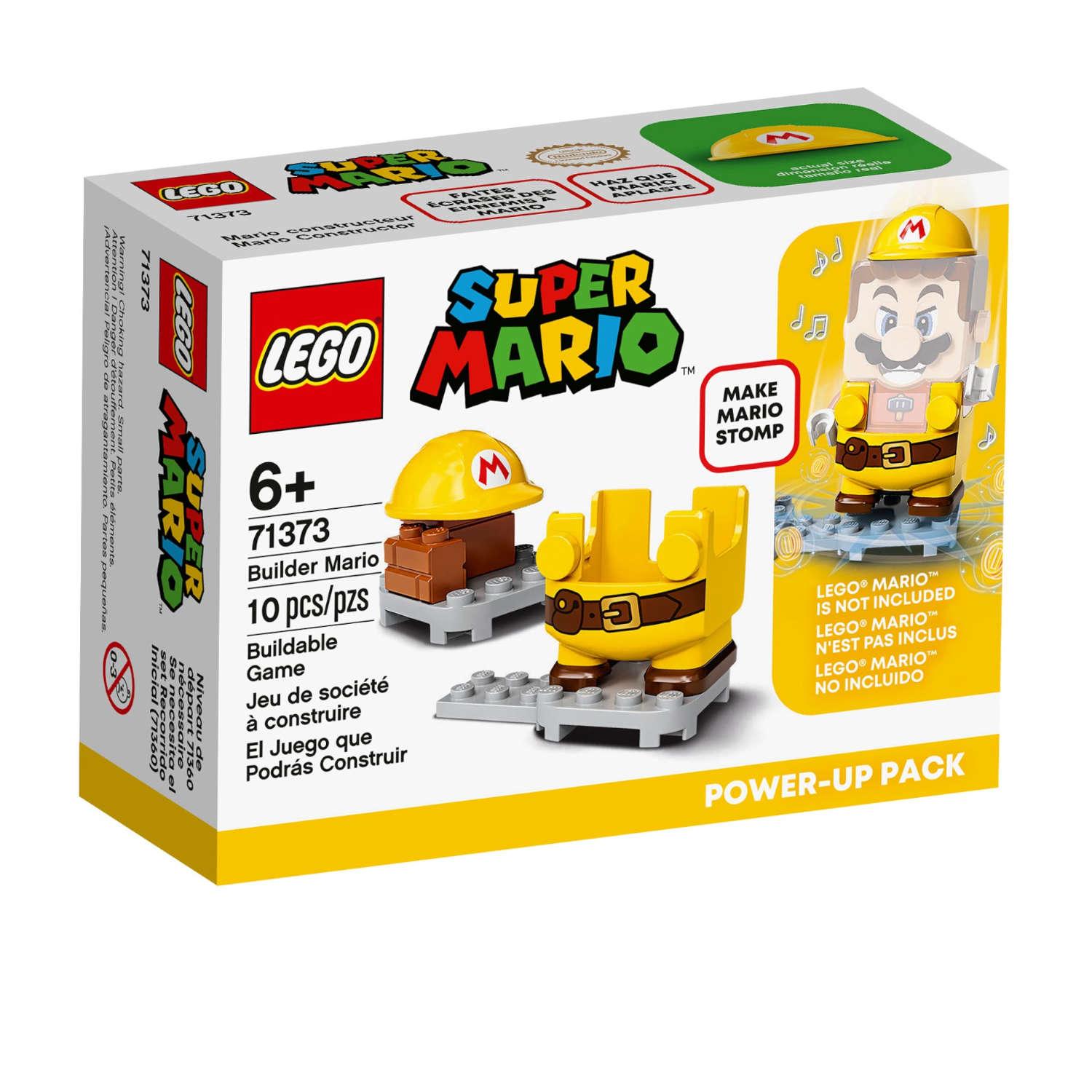 Grazie al Pacchetto Trasformazione Mario Costruttore, i giocatori possono raggiungere punteggi più alti. Quando indossa questo costume interattivo, il giocatore può guadagnare monete digitali facendolo saltare con forza sul percorso costruito con i mattoncini. (Personaggio non incluso).
