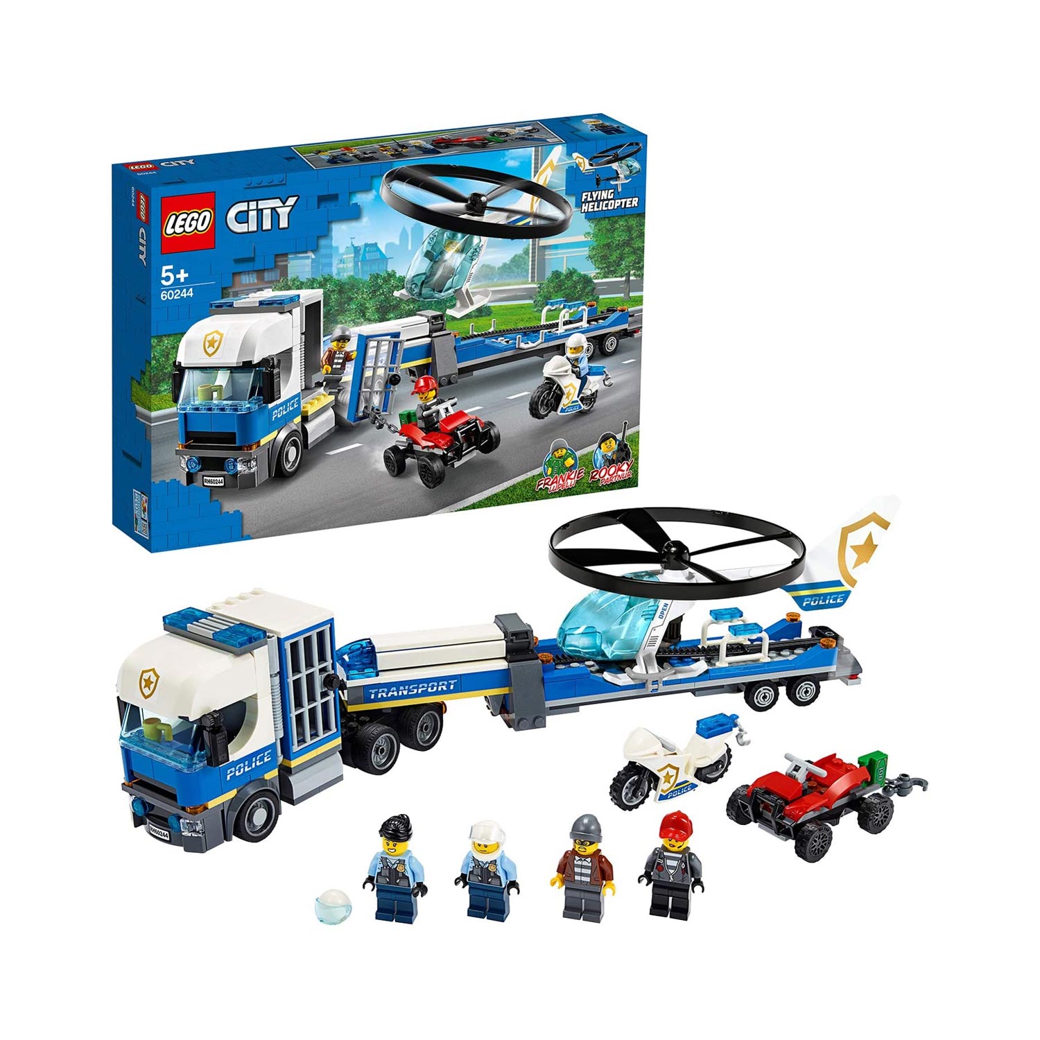 Il trasportatore di elicotteri della polizia di Lego City è il set perfetto per i bambini che amano i giochi dazione. Include un camion con cabina di guida dettagliata, una cella mobile, un computer, delle barriere stradali, un elicottero con lanciatore, una moto e un ATV.