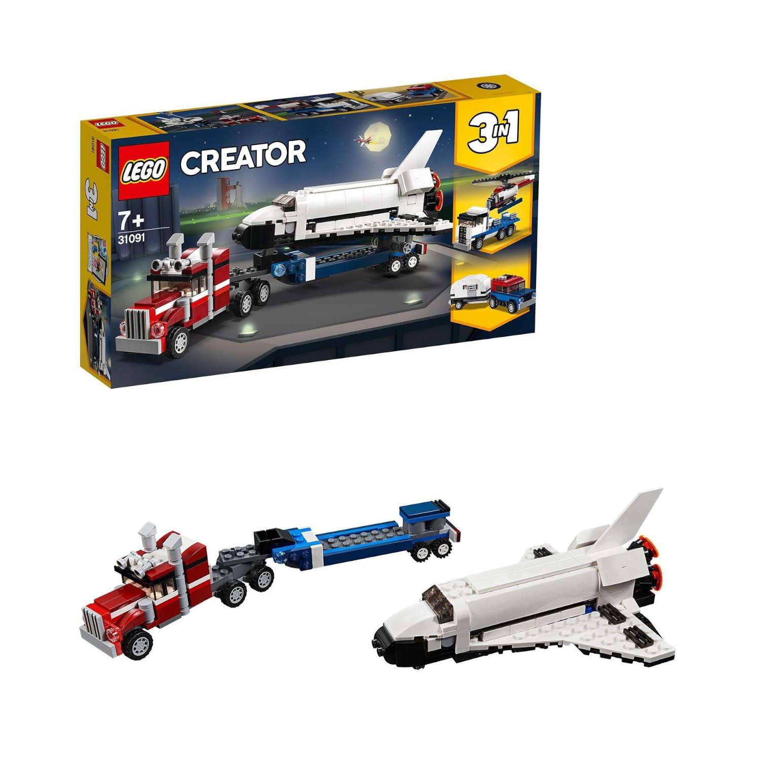 Con i set LEGO Creator 3 in 1 avrai 3 diverse esperienze di costruzione e di gioco. Costruisci il Trasportatore di shuttle per creare un Trasportatore di elicotteri giocattolo o un modello di Auto con roulotte, per divertirti ancora di più.con camion dotato di pianale e rimorchio e scarichi verticali, clacson a tromba montati sul tetto, parabrezza fumé e 10 robuste ruote con pneumatici pesanti, oltre a una navetta spaziale giocattolo con grandi motori, portelli del vano di carico apribili, gru funzionante.
