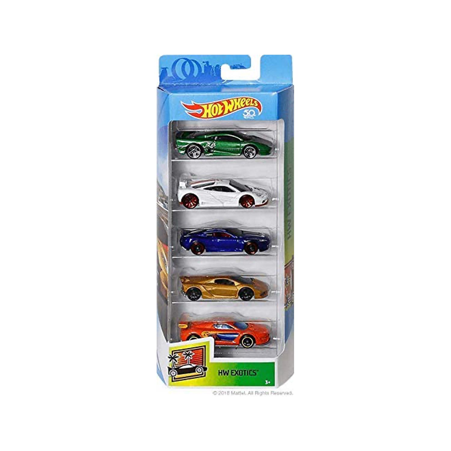 Il set Hot Wheels include 5 modelli differenti di macchinine. Una varietà di temi da collezionare e scambiare con gli amici. I veicoli hanno decorazioni esclusive e uno stile inconfondibile.